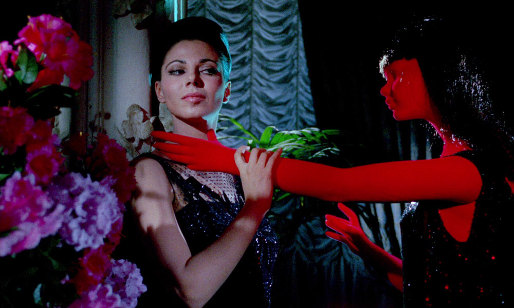 Once again, the flowers were inspired by Mario Bava's Blood and Black Lace. One of the most striking aspects of the film is its opening credits sequence, featuring actors posed with colourful blooms bathed in jewel lighting (refer to the picture below for reference). While multicolored blooms looked stunning in this scene, they would have been overwhelming for a wedding with a colour scheme of coral red and dove grey, especially against dresses.